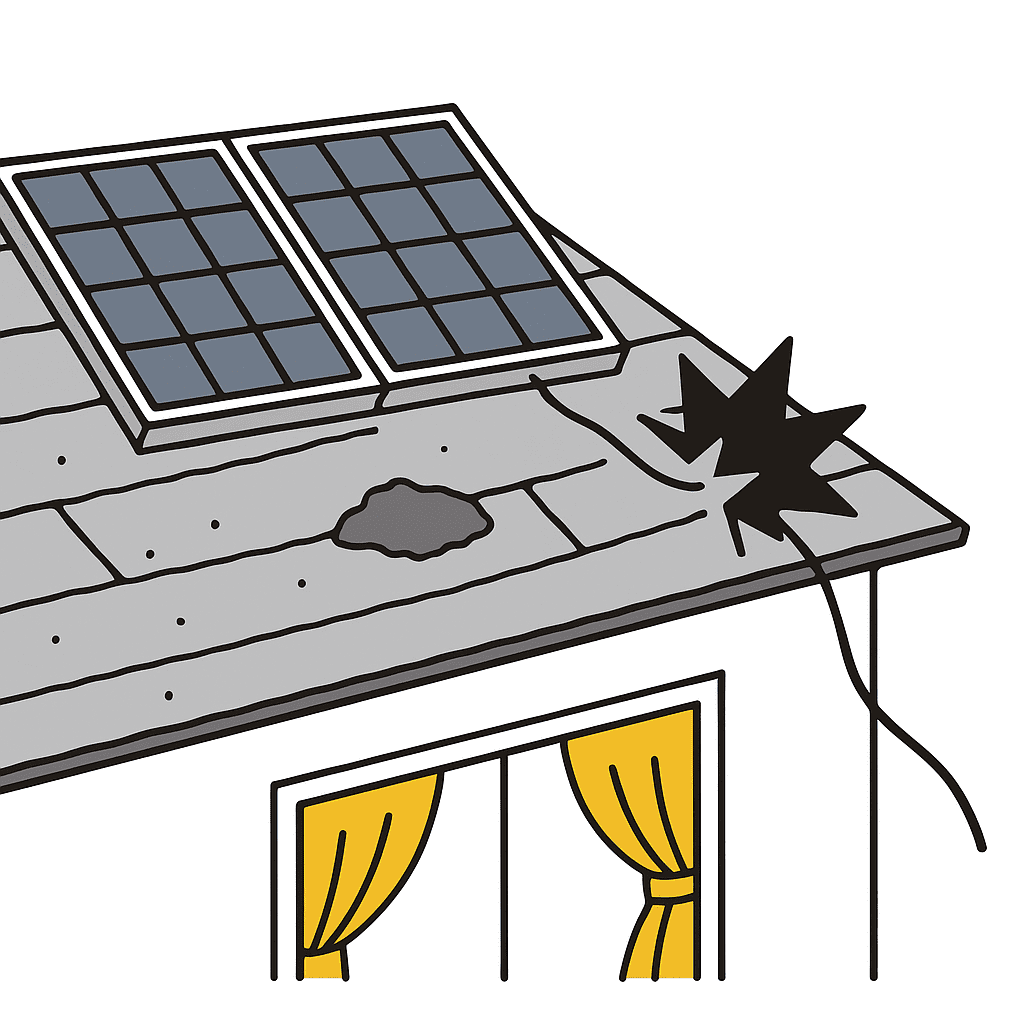専門の電気工事士が適切に処理を行うため雨漏りのリスクはありません。むしろ金具周りの防水処理も一緒に確認できるので、将来の雨漏り予防にもつながります。