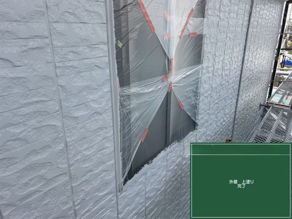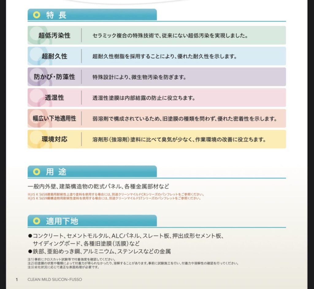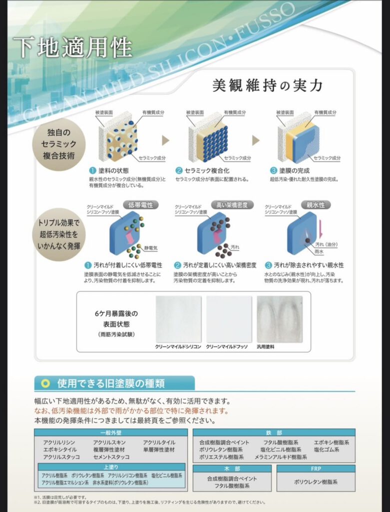 外壁の上塗りで使用したクリーンマイルドシリコンは低汚染・弾性・防カビ・耐久性にも優れております。