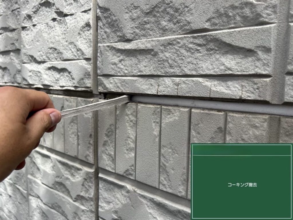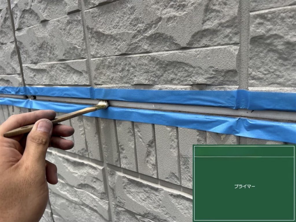 コーキングを取れるとこまで撤去して専用プライマーを塗り新しいコーキングを充填していきます。
